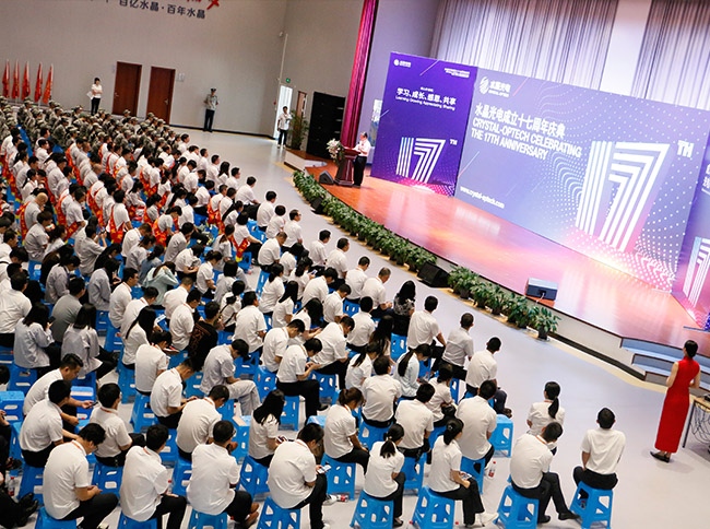8月2日,公司在综合楼三楼举行了水晶光电成立十七周年庆典。公司董事长林敏,董事、总经理王震宇等领导班子以及公司各职能中心和事业部、分子公司的领导和员工代表参加了此...
